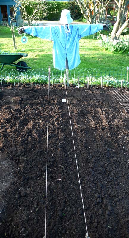 I've erected a motley collection of barriers to stop the pigeons spoiling all my work. And even more problematic - there's a rabbit!